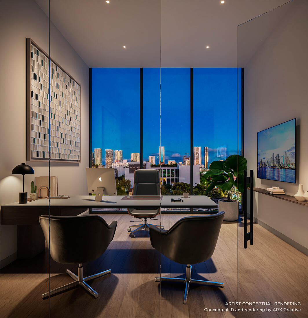 Como una oferta pionera, Twenty Sixth & 2nd Wynwood Residences ofrecerá a los propietarios la posibilidad de alojar su casa y oficina en Airbnb.Los espacios de trabajo en Twenty Sixth & 2nd redefinen la armonía de un estilo de vida con una comodidad inigualable. Equipadas con elegantes espacios para reuniones y una zona de relajación, las suites en Twenty Sixth & 2nd ofrecen el espacio perfecto para prosperar, a la vez que fomentan la innovación y la visión. Las suites cuentan con una distribución con paneles de vidrio, entrada segura, asientos con escritorio, cableado para TV, cocina americana y zonas de ocio.