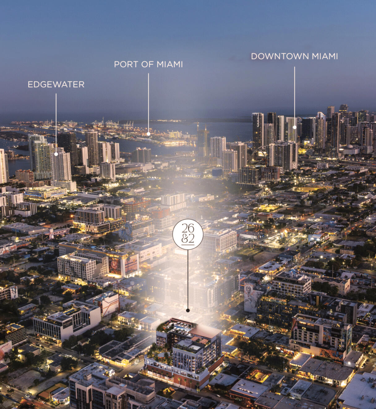 26th and 2nd Wynwood Residences ofrece exclusivas amenidades estilo resort, incluyendo vistas que capturan la energía dinámica de Wynwood y el horizonte de Miami, ubicado apasos de las galerías de arte, restaurantes y entretenimiento de renombre mundial de Wynwood, 2972 Metros cuadrados de servicios inspirados en el bienestar, casa de meditación de cristal y circuito termal, piscina y salón elevados en la azotea estilo resort, colección de instalaciones de arte personalizadas, tecnología de construcción inteligente y mucho más.